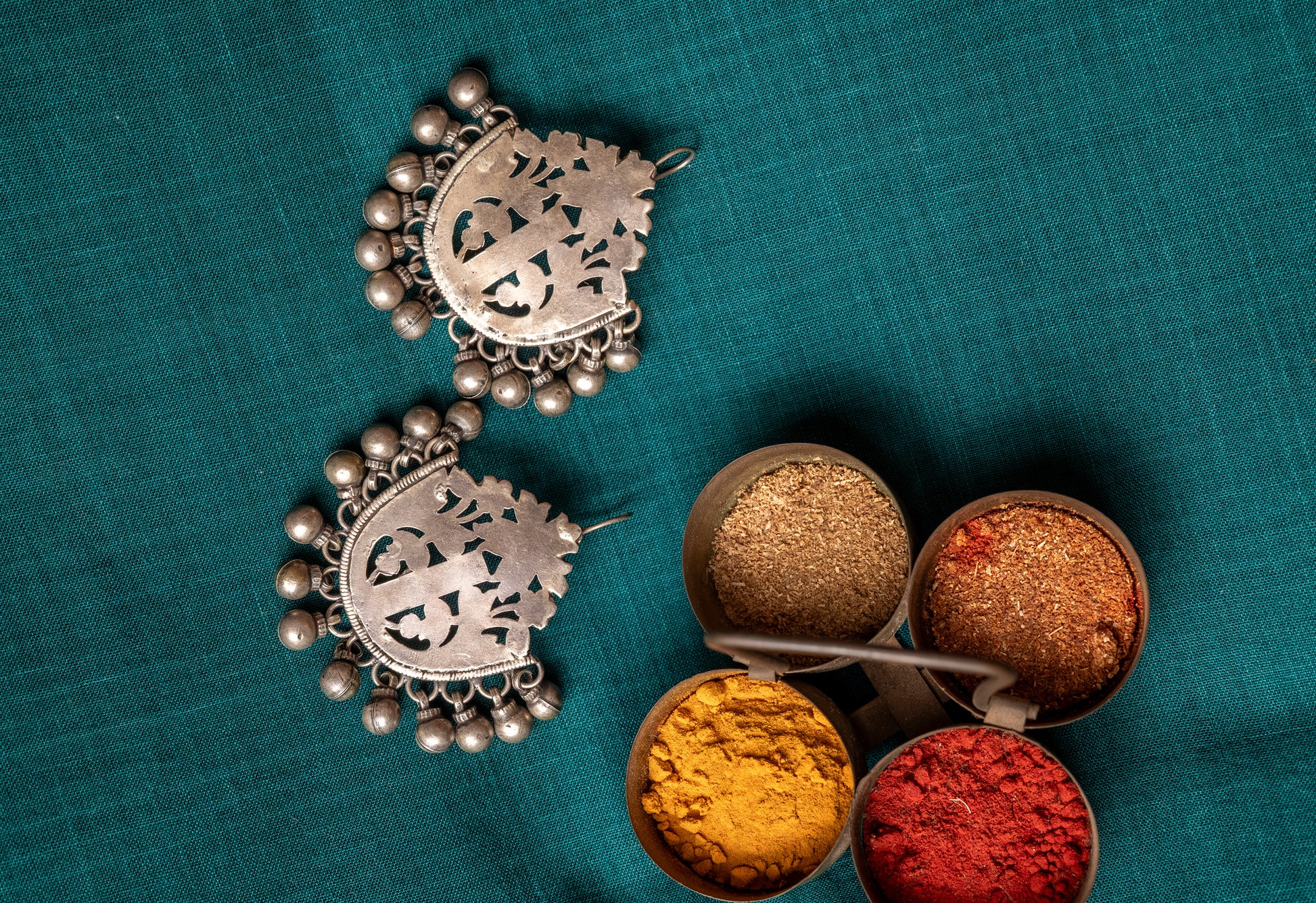 Handmade and handcut solid silver earrings with silver bells or ghungroos at the lower edge and a hook. The ghunghroos are handcrafted, not wax-filled but due to their density make a soft deep ringing sound when they move. The lower rim of the earrings are handetched to perfection. Dimensions: Length 2.5 inches / 6.35 cms. Breadth 1.75 inches / 4.45 cms.